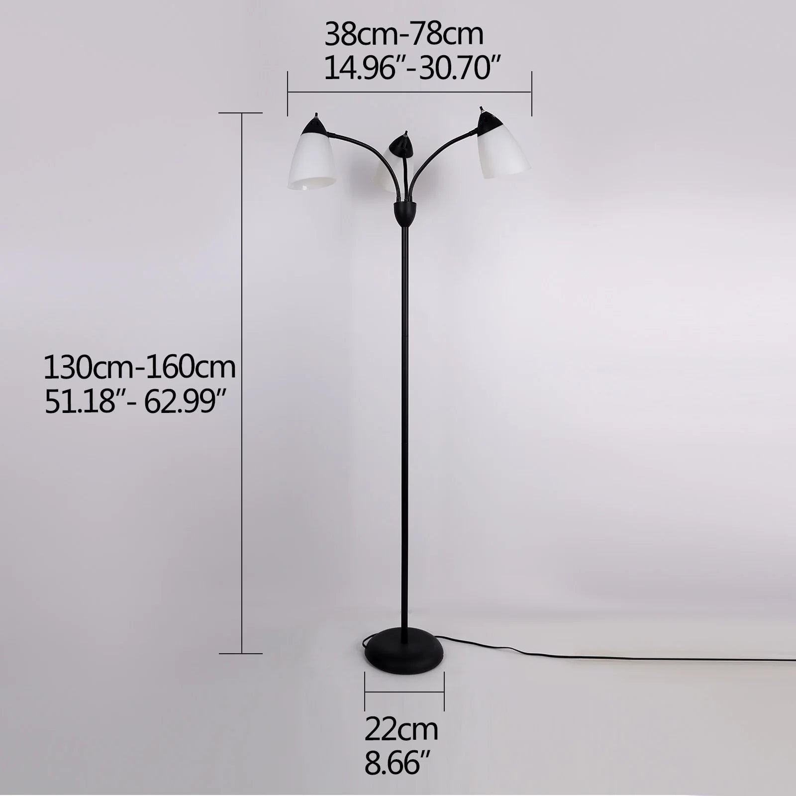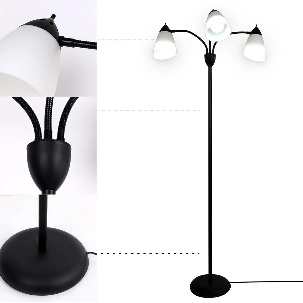 Adjustable Black Floor Lamp with 3 Heads