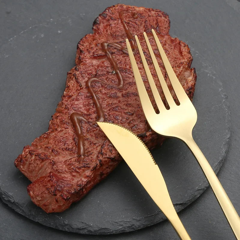 The durable stainless steel construction ensures long-lasting quality, while the matte gold finish exudes luxury and refinement. Each piece is ergonomically designed for comfortable handling, making every dining experience a pleasure.