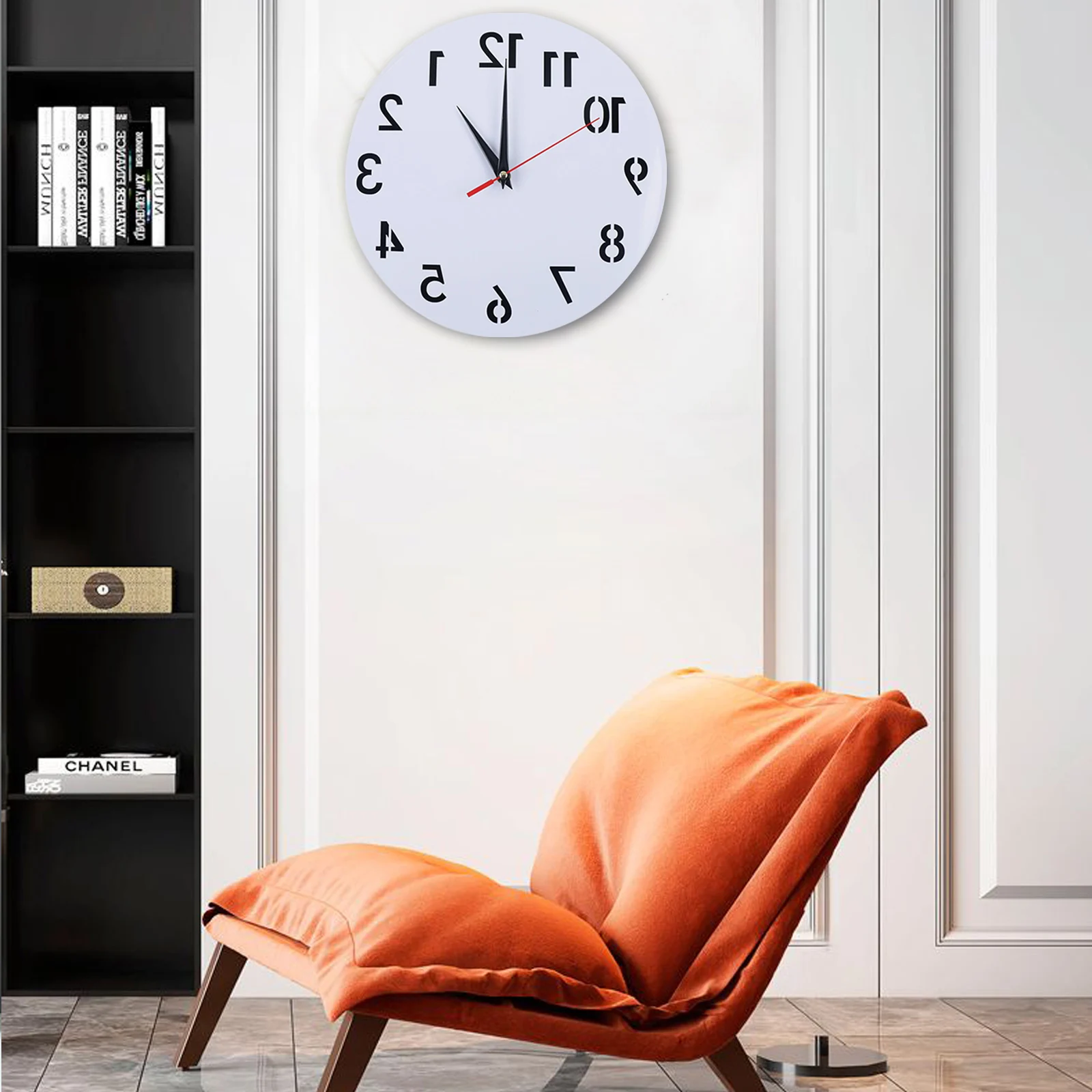 Round Acrylic Reverse Backwards Silent Wall Clock