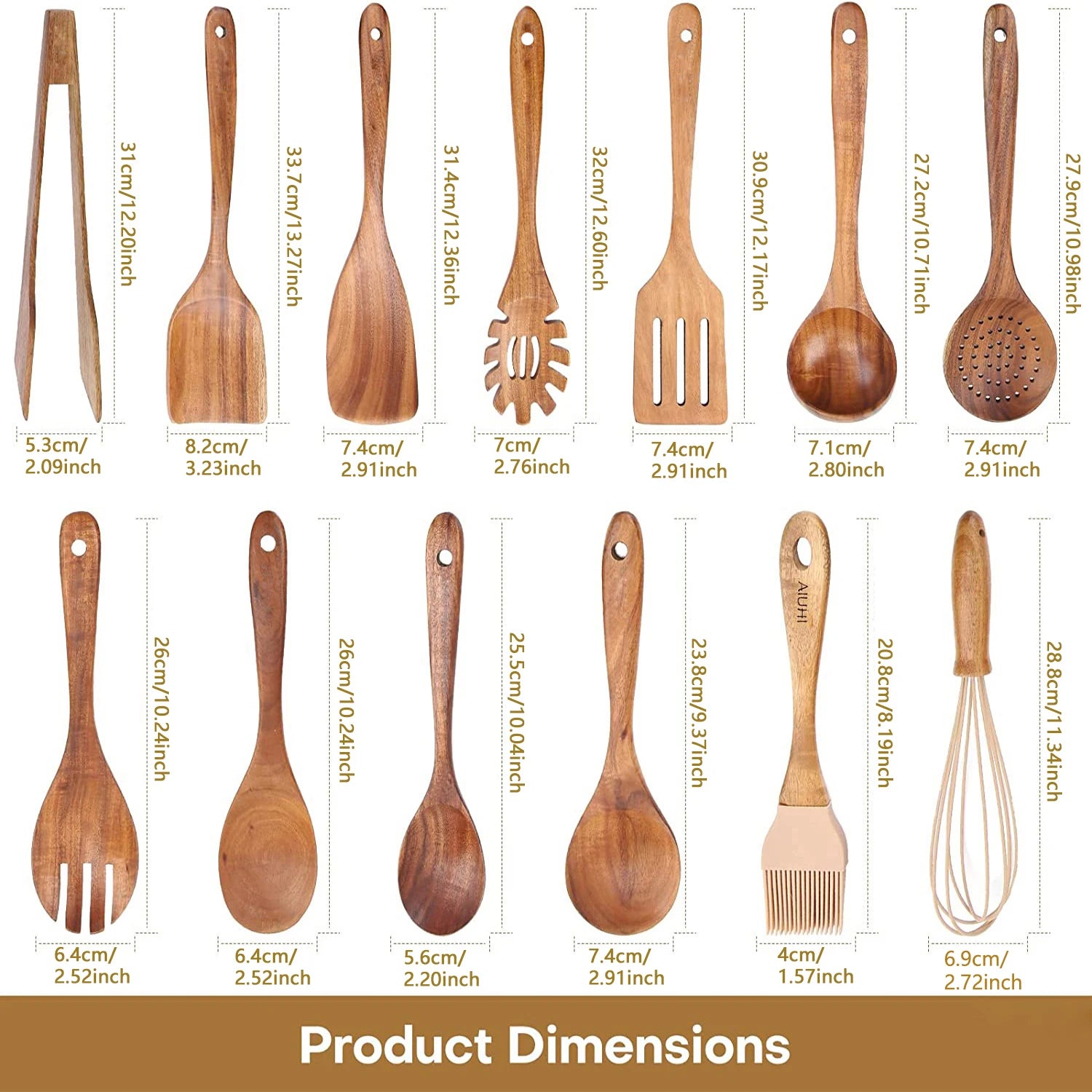 2. AIUHI's Wooden Kitchen Utensil Set : Over the past years, we have focused on upgrading wooden kitchenware. You can trust our brand. This is a new suit to meet the new needs of the kitchen. Spoons are made of high-quality wood,improving cooking fun.